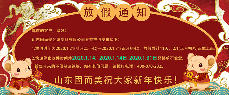 山東固而美金屬制品有限公司春節(jié)放假安排如下:
